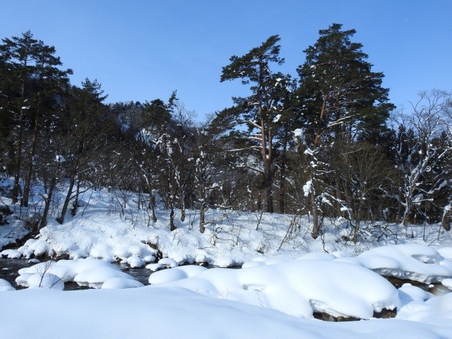 春から秋には、河原の石をスコップで掘って自分でつくる足湯「川原の湯っこ」を楽しめます。温度調節に四苦八苦するのも、また一興。