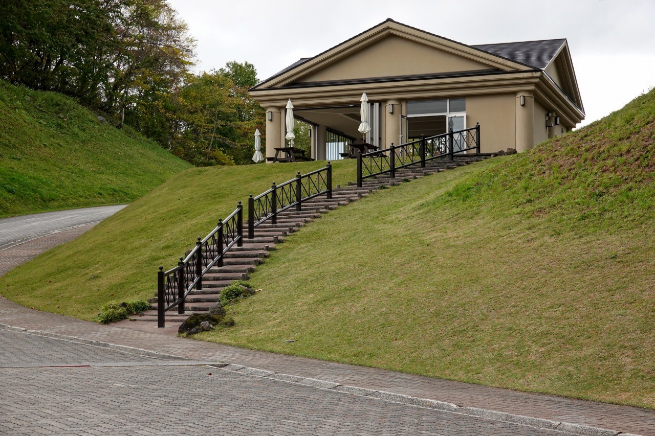 綺麗に整えられた庭も魅力。特に蓮の季節がおすすめです。ベンチに座ってゆっくり眺めるのも素敵。磐梯山も望むことができ、雄大な自然とアートの融合を感じられる場所です。