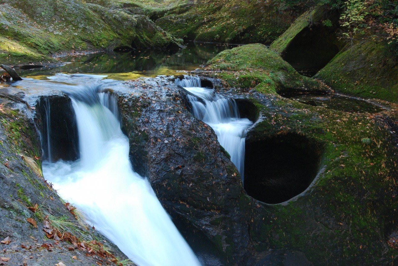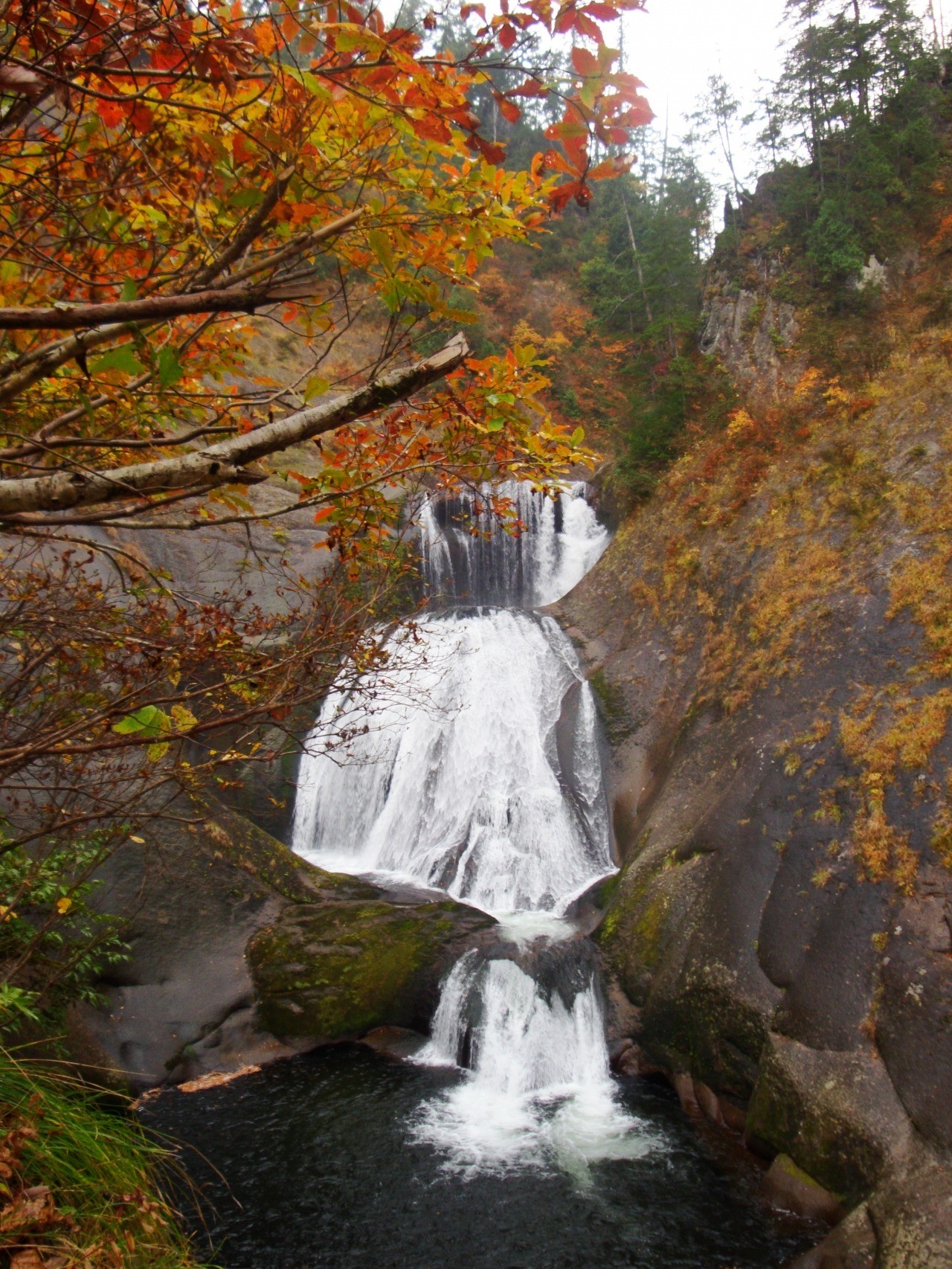 こまたきょう小又峡は、多くの滝やおう穴などが自然のまま残っている谷あいで、秋田県の名勝天然記念物に指定されています。