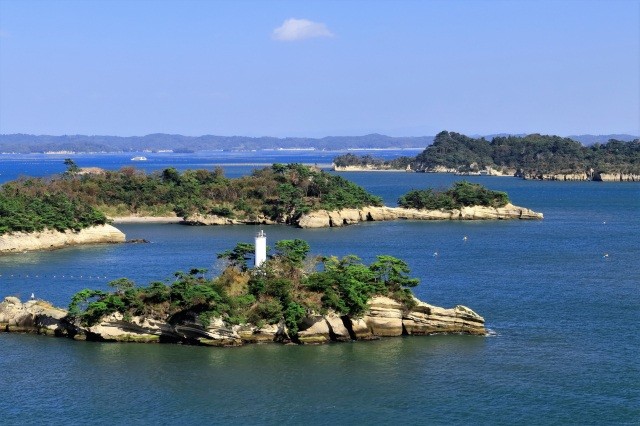まつしまわん(しだいかん:おおたかもり、とみやま、たもんざん、おうぎだに)京都の「天橋立」、広島の「宮島」とともに、日本三景の一つに数えられている松島。松島湾には大小260もの島々が浮かびます。その島々を望める名所を「四大観」と呼び、各スポットには眺めの印象を示す名がつけられています。