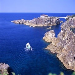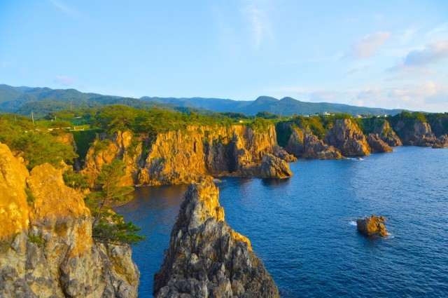 せんかくわん「尖閣湾」は、30m級の尖塔状の断崖が約3㎞にわたって連なる海岸に広がる5つの小湾の総称。天下の絶景と賞され世界一と呼ばれているノルウェーの「ハルダンゲル・フィヨルド」の峡尖美に似ていることから、尖閣湾と名付けられました。
