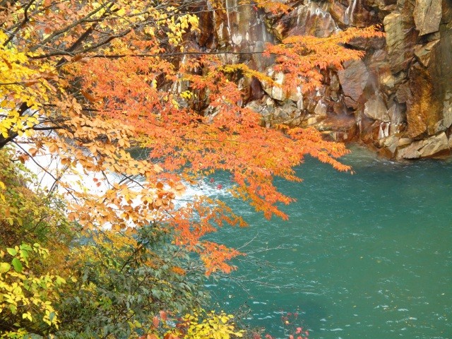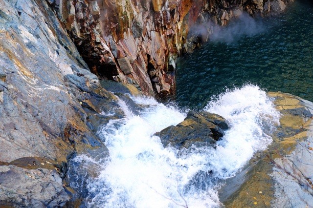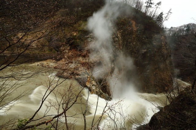 とりごえのたき葛根田渓谷を上流へと進み、滝ノ上トンネルを抜けると現れる鳥越の滝。落差30m、水しぶきをあげ、轟音をたてて落ちていくさまは圧巻!渓谷には温泉が注ぎ、蒸気も噴き出し、白い湯けむりと硫黄の香りに包まれて独特な雰囲気を醸し出しています。滝つぼは、吸い込まれそうな美しいブルー、新緑や紅葉など季節ごとに異なる色のコントラストがより美しさを引き立てます。