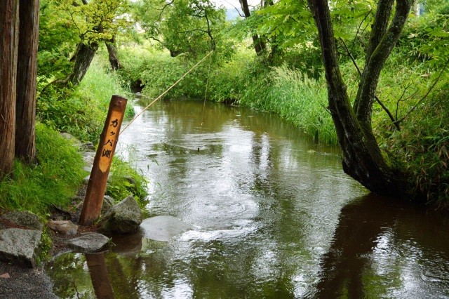 また、民話に出てくる妖怪「カッパ」が、近隣の「カッパ淵」で捕獲できるとされており、ここ伝承園で「カッパ捕獲許可証(220円)」をゲットできます。許可証の裏面には「捕獲7カ条」があり、「頭の皿を傷つけず、皿の中の水をこぼさないで捕まえること」等、カッパ捕獲の際のユーモラスな注意事項が書いてあります。淵には釣り竿が置いてあるので、キュウリをエサにカッパ釣りにトライしてみましょう!
