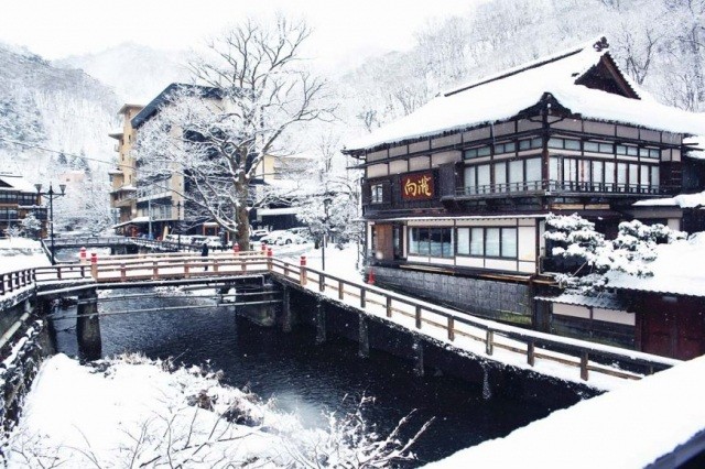 ひがしやまおんせん山形県のかみのやま温泉、湯野浜温泉とともに奥羽三楽郷のひとつとして知られる東山温泉。春の桜、初夏の新緑、秋の紅葉、冬の雪見風呂と四季を感じられる自然豊かな温泉地でありながら会津若松市中心部から車で10分と好アクセスです。川沿いにたくさんの宿が建ち並び、射的場や小さな滝があるなどどこか懐かしい温泉街の雰囲気が漂っています。