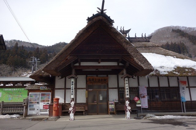ゆのかみおんせんえき珍しい茅葺屋根の駅舎を有する会津鉄道の駅。囲炉裏がある待合室も趣があります。囲炉裏を囲んでお茶を飲み、電車が到着するまでの間、ほっこりとした時間を過ごす事ができます。この囲炉裏、田舎らしい雰囲気の演出に一役買っているだけではなく、茅葺屋根に集まってくる虫を煙で追い払う役目も担っているのだとか。駅舎の隣には源泉掛け流しの足湯「親子地蔵の湯」があり、のんびり浸かって足の疲れを癒せます。
