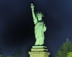 アメリカ・ニューヨーク市と同緯度で結ばれていることから、北緯40度40分の「4」の数字にこだわって、本家の4分の1の大きさで建てられました。高さは20.8メートル。東京のお台場にある自由の女神像の約1.7倍のサイズです。