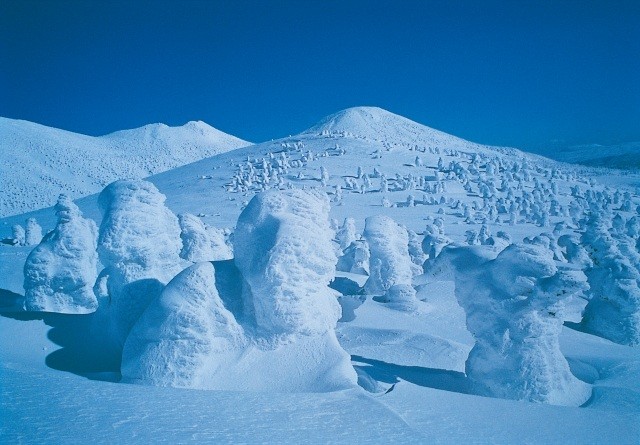 はっこうださんのじゅひょう蔵王・八幡平と同じくアオモリトドマツが広く分布し、素晴しい樹氷をつくります。怪奇・神秘の境として有名。樹氷は冬季(11月中旬~2月)に見られます。