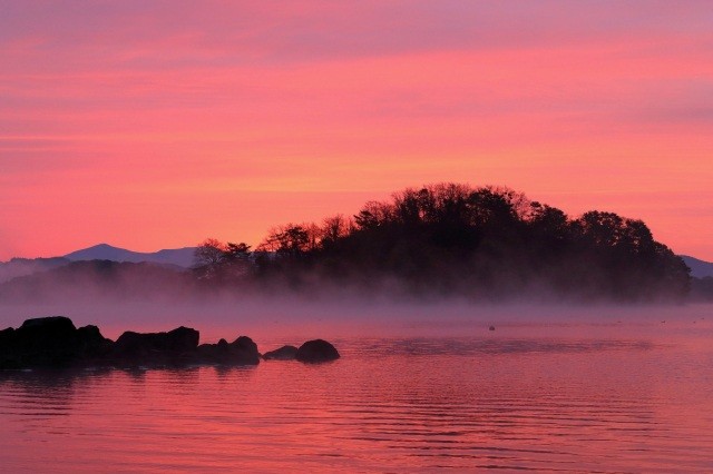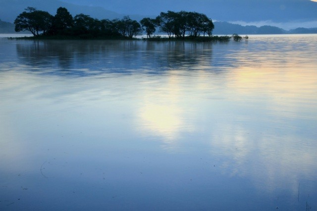湖上の美しい島々とともに磐梯山の爆裂口の跡がみられるなど、自然の偉大な力を感じることができます。