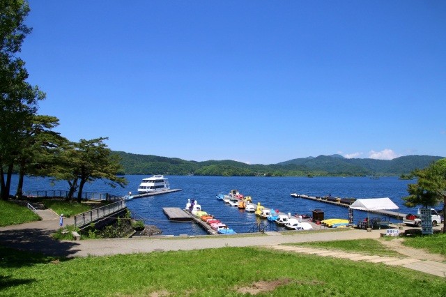 湖畔を周遊する道路はドライブにも最適。レストランや農産物直売所がある「道の駅 裏磐梯」からは桧原湖を一望でき、おみやげも買うことができます。レトロでかわいい観光周遊バス「森のくまさん」に乗ってゆっくり湖の周りを巡るのもおすすめです。