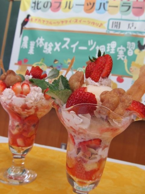 きたのふるーつぱーらー地域特産のくだものをふんだんに使用した自分オリジナルのスイーツを作りませんか。観光農園でフルーツのもぎとりをした後に果物に合わせた様々なスイーツをつくります。