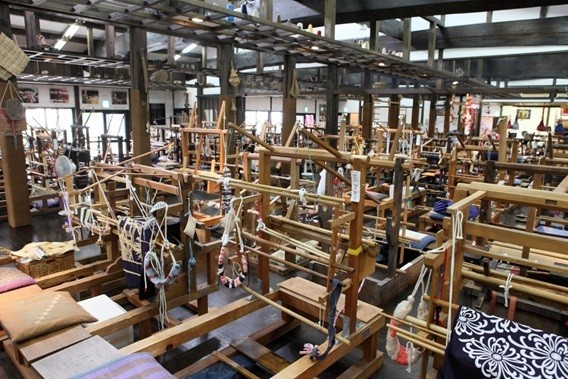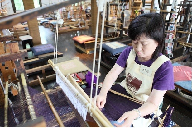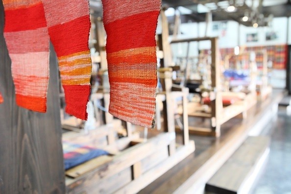 青森県の伝統工芸品「南部裂織」(なんぶさきおり)を体験することができる施設。「裂織」は、使い古した布を細く裂き、織りこみ、衣服や生活用品へと再生する織物です。横糸に細く裂いた布、縦糸に木綿糸を使用して織ります。カラフルな色合いが特徴。その裂織を国内でも珍しい地機(じばた)という機械で織るのが特徴で、織物を織る地機の動かし方を先生に教わりながら、約1時間で幅20センチ×長さ25センチのテーブルセンターを織ることができます。