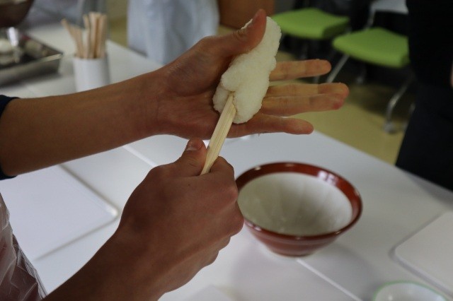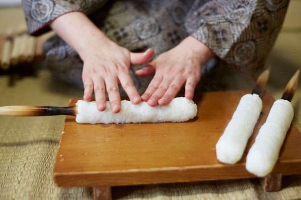 きりたんぽづくりたいけん(あきたけんおおだてし)「きりたんぽ」は、つぶしたごはんを杉の串に筒状に付けて焼いた「たんぽ」や比内地鶏が入った秋田郷土の鍋料理です。きりたんぽは、大館では家庭料理であり、お客様のもてなしや冠婚葬祭の際によく食べられるごちそうで、「ハレの日の食べ物」として受け継がれてきました。作り立てのきりたんぽの味は格別なので、調理体験を通じて秋田に触れてみてください。
