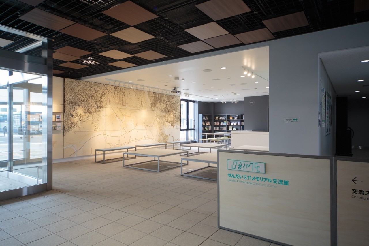 仙台市地下鉄東西線の東の起点駅であり、津波によって甚大な被害を受けた仙台市東部沿岸地域への玄関口でもある荒井駅。この駅に直結する本施設は、東日本大震災を知り、学ぶための場であるとともに、人と人が行き交う駅という場所で、様々な立場の人たちとコミュニケーションを重ねることで集めた知恵と教訓を、世界へ発信する拠点として設置されました。