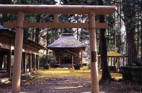 抱返り渓谷の入口にあり老杉に囲まれて荘厳な雰囲気。寛文13年(1673)抱返村(現若松地区)開村の際に、水源至難の為大和国丹生川上神社分霊を勧請して、水波能売神を奉斎し、延宝3年(1675)9月16日社殿及び長床を建立し抱返村の鎮守とし、例祭日としました。