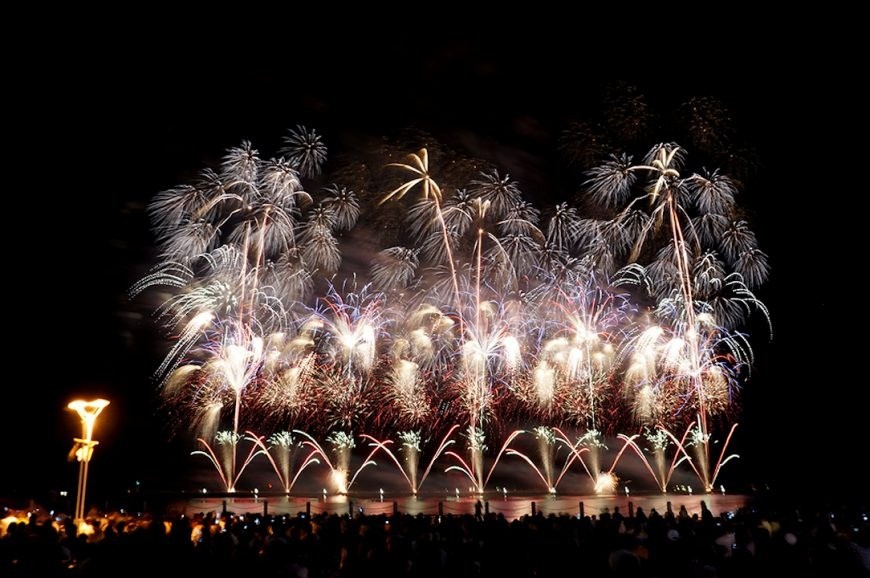 The greatest highlight is the creative fireworks. The fireworks intricately programmed on a second-by-second basis are launched in succession into the night sky in time with music, enchanting the spectators with an even more splendidly-coloured night at the port.