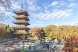 The emperor’s Mound, where the relics of Emperor Antoku are said to have been buried, is also famous as a sacred place for those seeking to get married. In the temple's precincts is the Sanmon Gate, a registered tangible cultural property, the Bell Tower, the Gomyo Sadayoshi-do (mausoleum), Chozuya (purification fountain), and a place where visitors can purchase a variety of charms. The five-story pagoda made of Aomori cypress and the main hall are also must-sees.