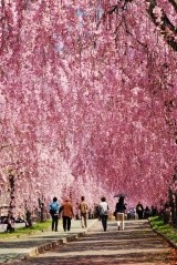 A part of the site of the former Japan National Railways (JNR) Nichu Line, which was closed down in 1984, was developed as a promenade, and approximately 1,000 weeping cherry trees are planted along the 3 km length from the promenade entrance located a 5-minute walk west of Kitakata Station, making it one of the largest weeping cherry trees in Japan. In addition, an SL train that was running at that time is displayed at the halfway point of the path, where visitors can enjoy the collaboration with weeping cherry trees. The cherry blossom tunnel is a great photo spot.
