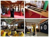 Reception desk opens at 9:30 a.m. Prayers begin at 10:00 a.m. Swordsmanship training experience within shrine precincts begins at 11:00 a.m. Bad luck banishing at the Warakuden building begins at 11:30 a.m. Afterwards participants will be presented with a memento.