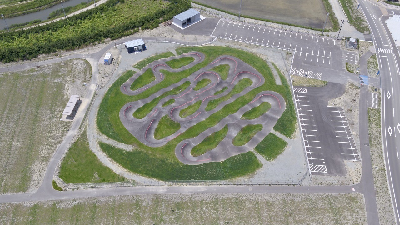 Shinchi Pump Track is a newly created sports facility in the Tsurishi district of Shinchi Town, which was severely damaged by the Great East Japan Earthquake and Tsunami.