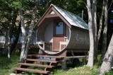 Barrel sauna in front of Lake Inawashiro