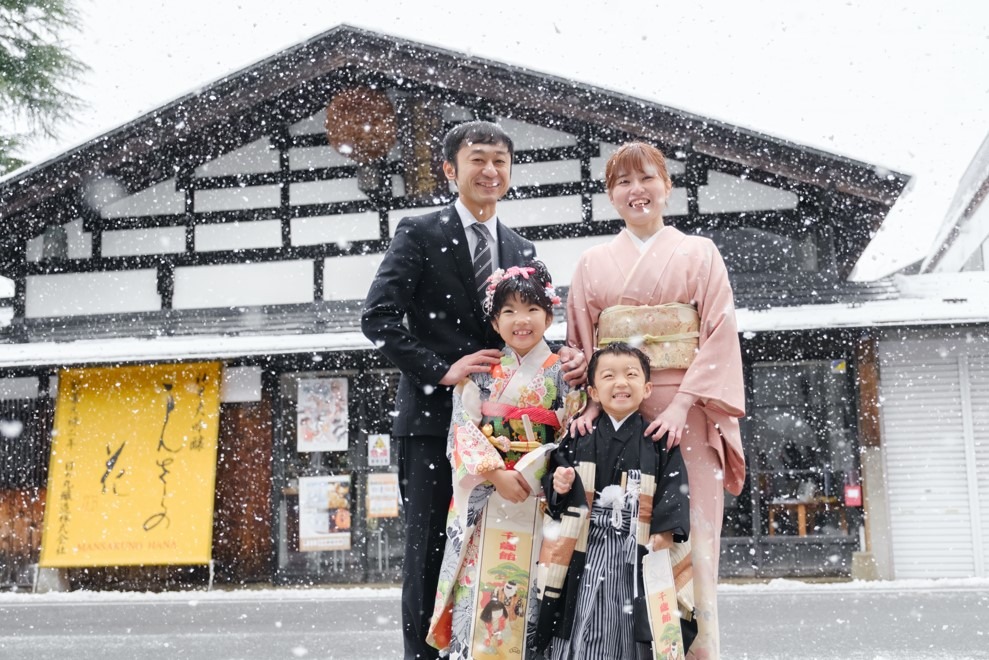 This experience plan allows you to take family photos in kimono at the built-in Masuda-cho, Yokote City, which is a national Important Preservation District for Groups of Traditional Buildings.