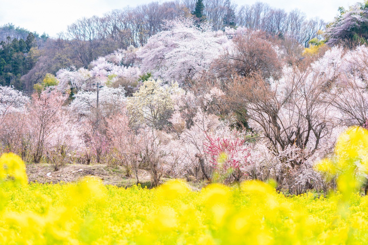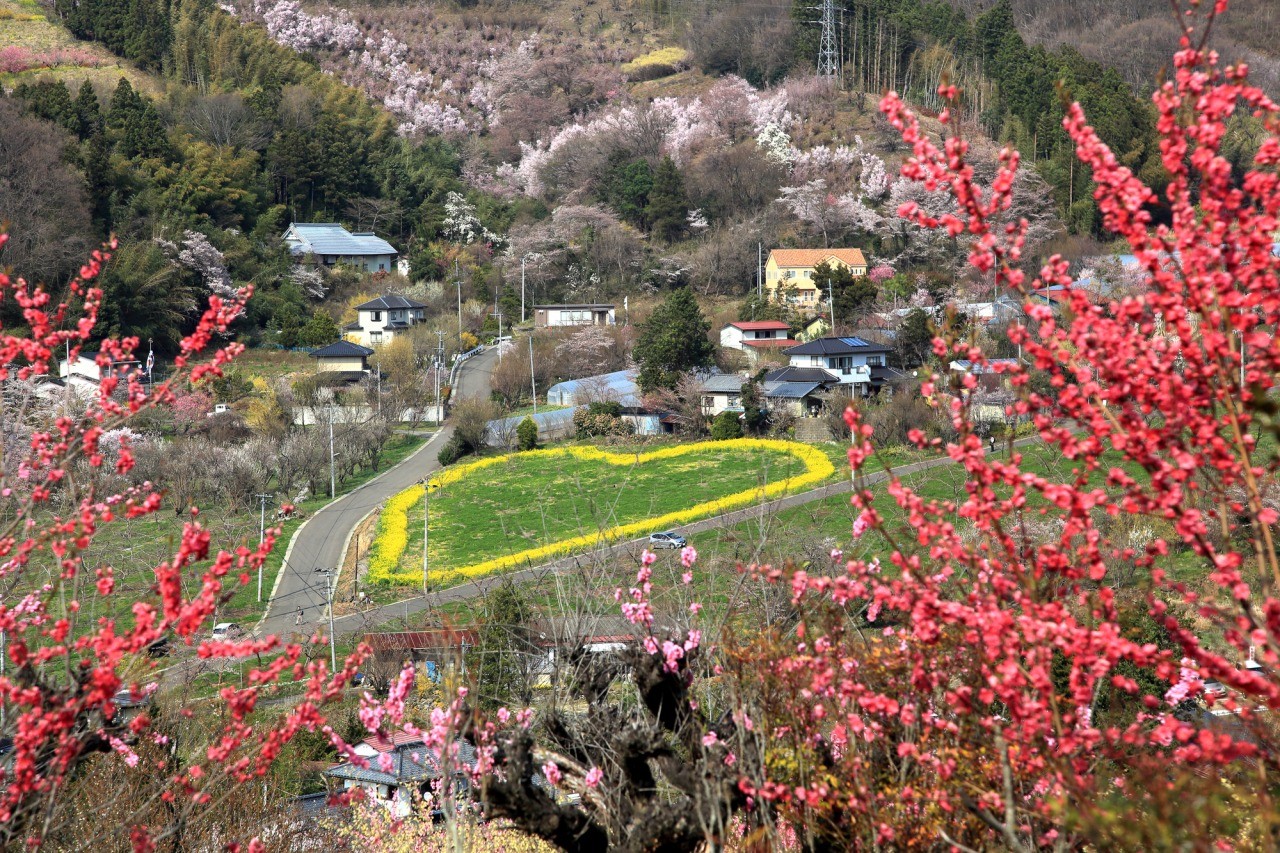 Hanamiyama Park is a famous spot for flowers where not only cherry blossoms and ume (Japanese plums) but also weeping forsythia, Japanese quince, Asiatic dogwood, lily magnolia and peach trees blossom in fully glory simultaneously. This beauty makes it s spot worthy of being called an ""earthly paradise.""