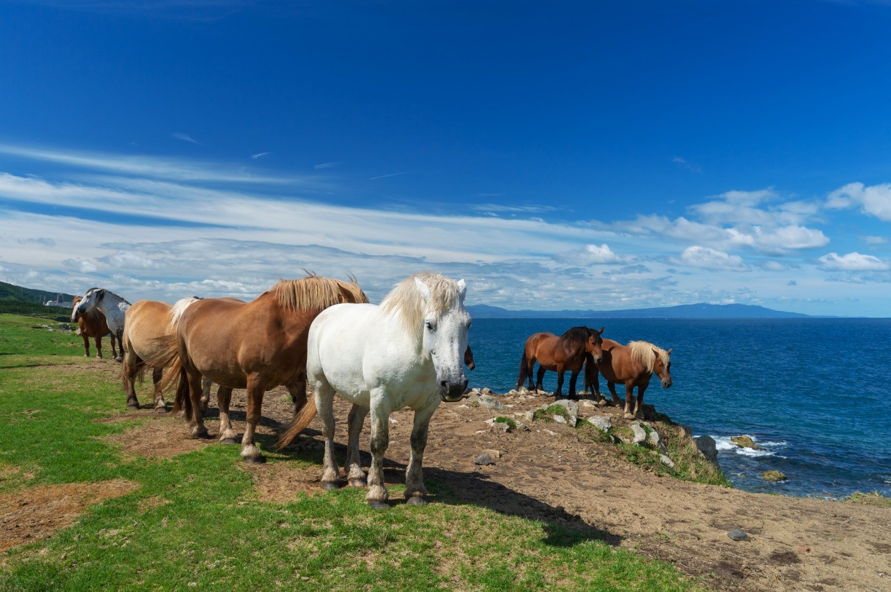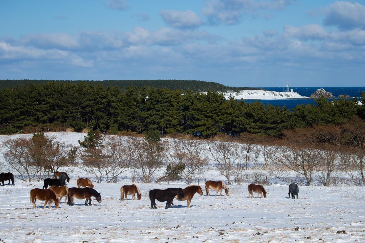 Horses called Kandachime graze on the pastures around Shiriyazaki. Kandachime were used as agricultural work horses due to their strength and ability to endure cold and tough diets, but they have slowly disappeared with the changing times. However, thanks to measures to protect them, their numbers have since recovered with about 30 horses currently alive. As April to June is the season when Kandachime give birth, you might be lucky enough to see a newborn foal. The horses spend their days in a pasture called Ataka when the area around Shiriyazaki is closed from January to March.