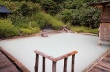 Tsuru-no-Yu features four kinds of hot spring waters from different springs known as white, black, middle and waterfall. Trying out each bath is recommended as each water has its own character and brings different health benefits. The popular mixed gender open-air bath is filled with a beautiful bluish-white water. Bathers enjoy the unique experience of fresh spring water bubbling up from its source below the bath. An open-air bath for women also features this white water bubbling up from below. Indoor baths for men and women are located in the rustic hut where white and black waters can be experienced.
