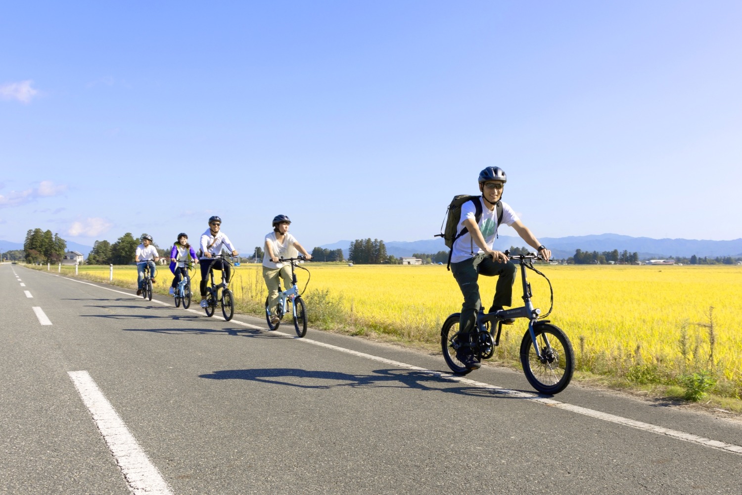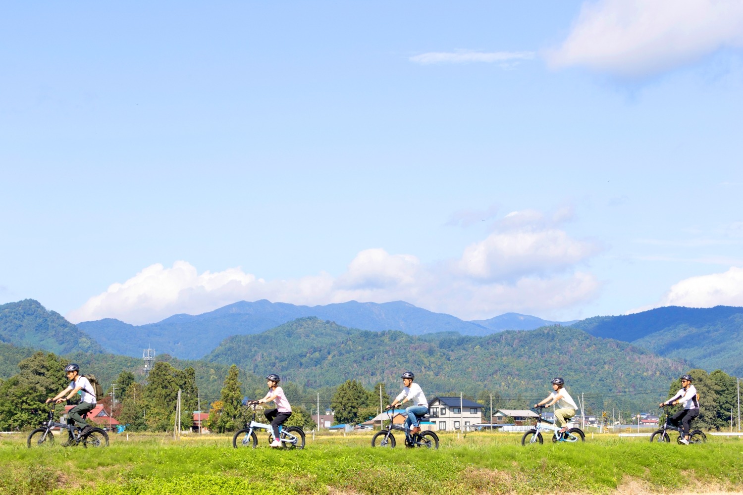 山形・飯豊町では、美しい田園風景の中をe-Bikeでゆったり走り、歴史や伝統的な軽食を体感します♪