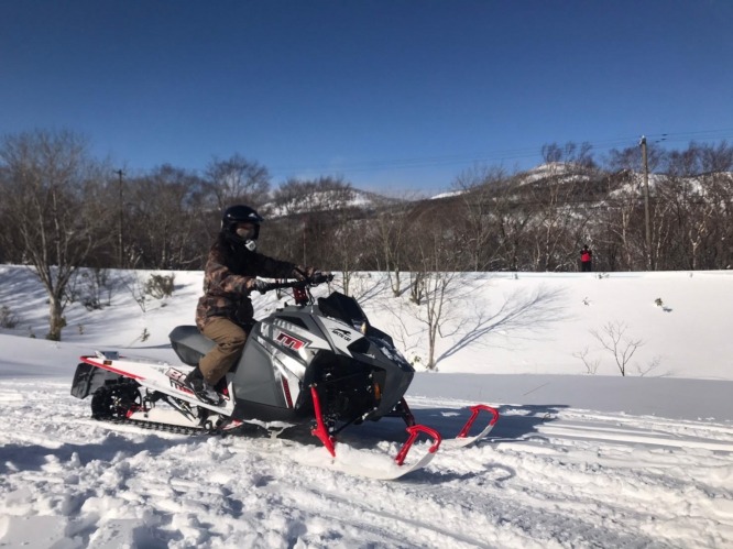 福島県の鷲倉山では、冬のモータースポーツ、スノーモービルの操縦体験で爽快感を満喫!