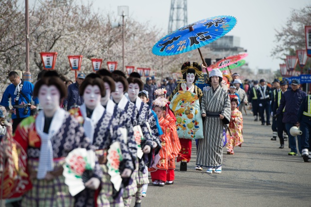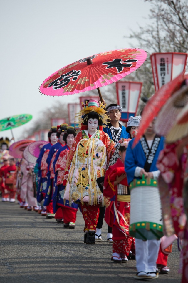 もともとは花見客のために行われた仮装行列がきっかけのこのイベント、華やかな桜と艶やかな花魁行列の時代絵巻をお楽しみください。