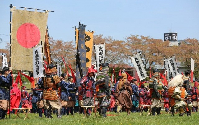 メインイベントは、5月3日に開催される川中島の合戦。上杉軍の火縄銃の号砲で決戦の火蓋が切られ、戦国史上最大の死闘といわれる川中島の合戦が始まります。両軍合わせて約700名の武者が入り乱れる総攻撃シーンや実際に川を渡る武田隊の川渡りのシーンなど、迫力満点。一番のみどころは、謙信がひとりで武田軍へ斬り込み、信玄との一騎打ちを再現した名場面。まるで戦国時代にタイムスリップし、その目撃者のひとりになったかのような雰囲気にさせてくれるでしょう。