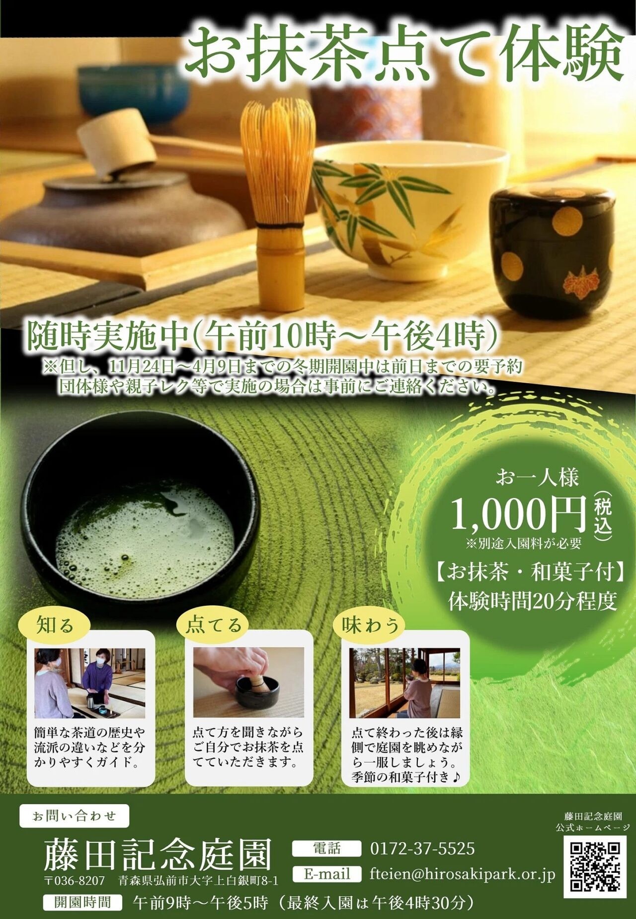 ※ただし、お抹茶点て体験(藤田記念庭園ガイド付きプラン)は体験料に入園料が含まれる。