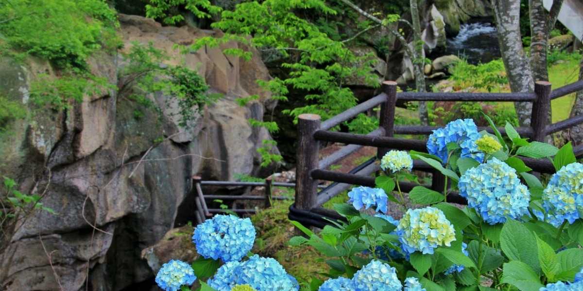 周辺の観光スポットも充実。磊々峡(らいらいきょう)は川の水に浸食されできた奇岩が美しい渓谷。一緒に見た二人は幸せになれると噂の「覗橋ハート」は恋人の聖地に認定されています。大切な人と橋の上から一緒に覗いてみてください!