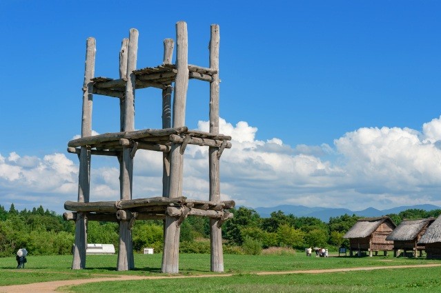 三内丸山遺跡は、日本最大級の規模を誇る縄文時代前期~中期の遺跡です。板状土偶や巨大木柱、漆塗り等高度な技術を要する遺物が出土しており、平成12年11月には国の特別史跡に指定されました。また、令和3年7月には三内丸山遺跡を含む「北海道・北東北の縄文遺跡群」が世界文化遺産に登録されました。