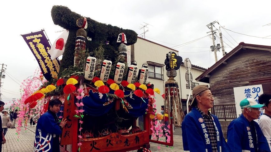 미야기현 북부에 위치한 가미마치의 전통 행사. 봄에 강풍이 내리불어 큰불이 빈발했던 데서, 풍화와 화재에서 벗어나도록 기원하던 축제가 "히부세노 도라마이"입니다. 약 650년 전부터 이어져 온 행사로 중국 전설 "구름은 용을 따르고, 바람은 호랑이를 따른다"에 연유하여 호랑이의 위세를 빌려 바람을 진정시키고자 호랑이로 분장한 무용수들이 춤을 추며 다채로운 다시(장식 수레)와 함께 천천히 행진합니다.