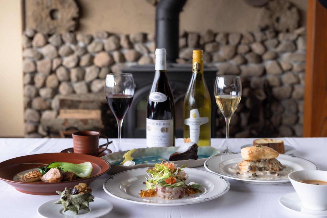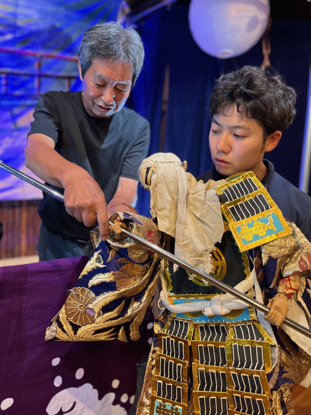 박력 넘치는 연기 후에는 사도산 식재료를 사용한 프렌치 풀코스를 즐길 수 있다. 연기자로부터 직접 인형 조작을 배울 수 있는 귀중한 체험이 인기다.