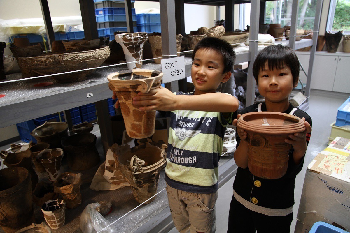 苗場山麓ジオパークは、奥信越と呼ばれる新潟県津南町・長野県栄村からなる日本有数の豪雪地帯です。私たちの祖先は、多雪という環境に適応して河岸段丘(かがんだんきゅう)に暮らし、豊かな湧水や動植物の恩恵を受け、歴史を紡いできました。縄文時代の遺跡が多く発掘され、火焔型土器に代表される当時の暮らしを見ることができます。約1万年間、森と生きた縄文時代の人々に習い、自然と共生することを諸感覚を通し、体感しながら学ぶ場所、それが苗場山麓ジオパークです。