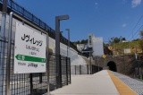 ○Jヴィレッジ駅 (日本で唯一の「ヴ」が着く駅。駅看板をバックに写真をぱしゃり!)