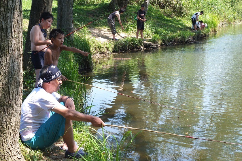 ③釣り体験…鯉、ナマズ、雷魚、ブラックバスなど様々な魚が生息しています。インストラクターがえさの付け方から指導します。