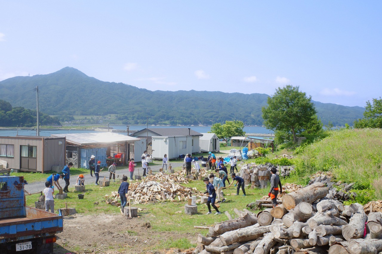 キリキリコクノマキワリ・ボウサイショクヅクリ・シンサイコウワNPO法人吉里吉里国は、大槌町吉里吉里地区にある海を真下にのぞむ絶景の丘にあります。豊かな森があってこそ海の環境が守れる。山と海に囲まれた大槌ならではの立地で林業をしている団体です。震災時に薪は貴重なエネルギーになり、火は被災者の心を慰めました。創立者の芳賀正彦氏は震災の語り手としても有名です。