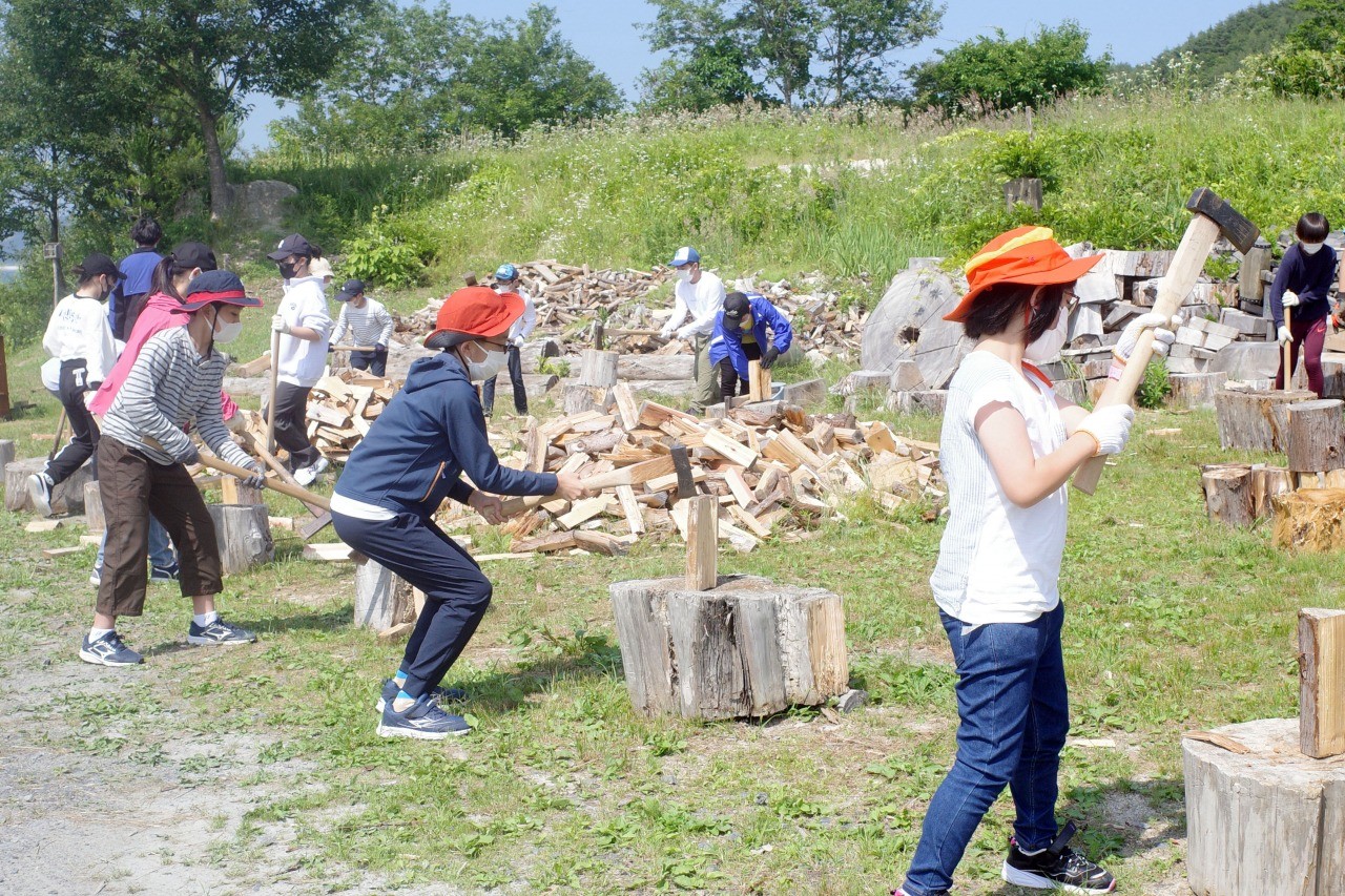 薪割りは、単純ながらやりはじめると大人も子供も夢中になる不思議な体験。震災時、ライフラインが途絶えたとき、エネルギーは薪でした。楽しみながら生きる術も学べます。