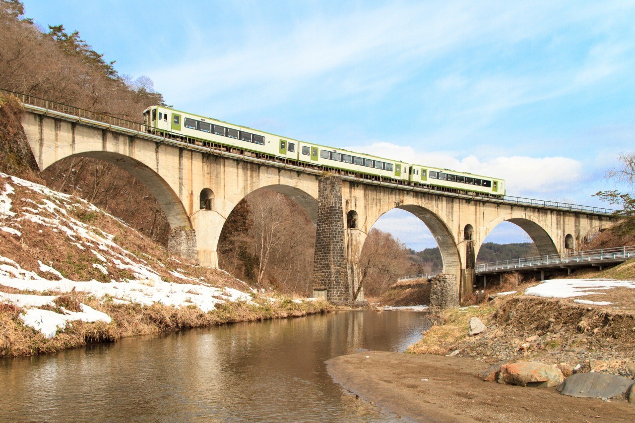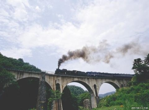 一日1本しか走らないSL列車もこの橋の上を走るので、運が良ければめがね橋の上を力強く走るSLを見られるかも?! まさに童話「銀河鉄道の夜」のような光景です。(SL銀河の運行は令和5年6月11日まで)