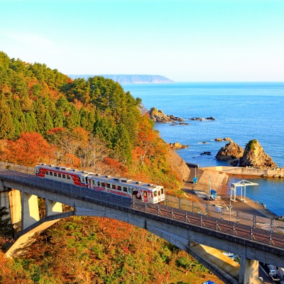 日本海に面して高層の宿が並び建つ温泉リゾート・湯野浜温泉で、露天風呂に浸かりながら海に夕陽が沈む瞬間を眺めてみませんか?辺り一面をオレンジ色に染め、日本海の水平線に沈む湯野浜海岸の夕陽は、日本の夕陽百選に選ばれています。旅の疲れが一瞬にして吹き飛ぶ絶景です。