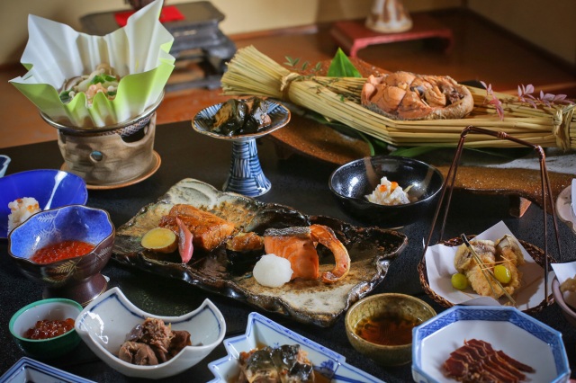 日本海の絶景と夕陽を眺めながら、温泉と新鮮な海の幸を楽しむ