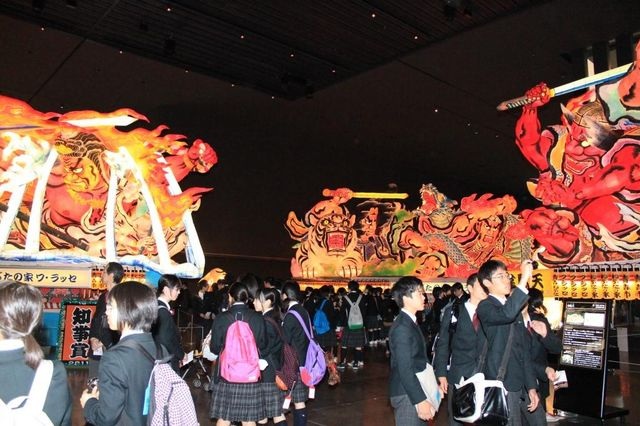 大型ねぶたに囲まれ、本番さながらの祭りを体験します。地元に長く伝承されているねぶた祭りを体験する事で自分たちの地域文化に目を向けるきっかけとなります。