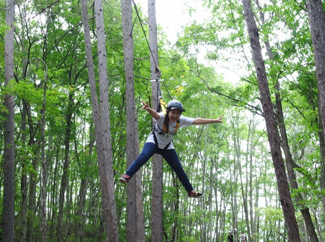 大自然を全身に感じながらワイヤーロープとプーリー(滑車)を伝って滑り降りる、アドベンチャーアトラクション!スリルと爽快感が味わえるエコな新体験!