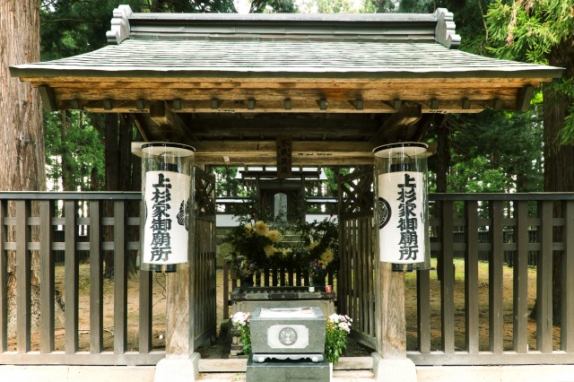 上杉神社は名将上杉謙信を祀っており、稽照殿は宝物殿として上杉謙信の遺品、刀や甲冑などを収蔵展示しています。直江兼続が所有していたといわれる愛の前立ての甲冑は有名です。