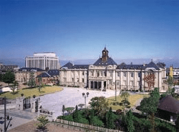 大正5年竣工の県庁舎と県会議事堂の2棟からなるレンガ造りの英国近代復興様式建築。現在は県郷土館として一般公開されています。国重要文化財。