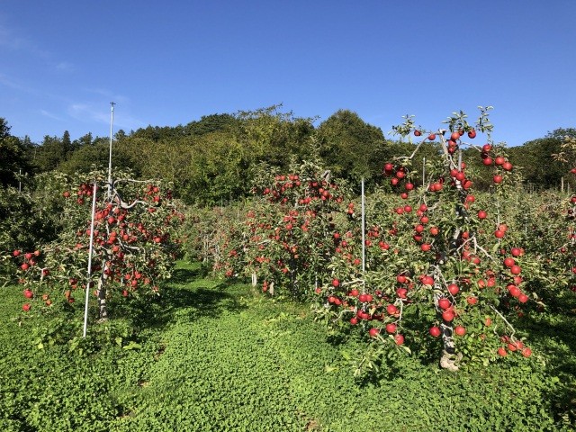 温泉が沸き、化石も出土するミネラル豊富な土壌とりんごの栽培に適した気温の寒暖差の大きい気候で高品質なりんごが栽培されています。